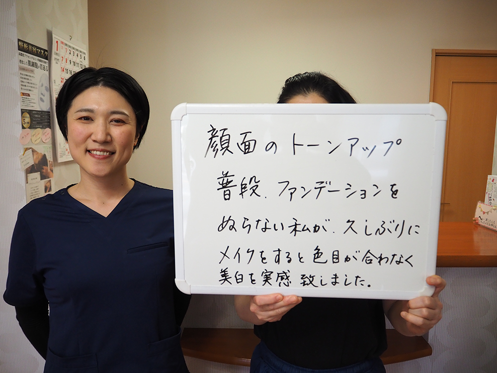 施術後に、施術前とどれくらい変化したのかを確認していただきます。また、あなたのお顔の悩みに合わせた効果的なアドバイスもさせていただきます。